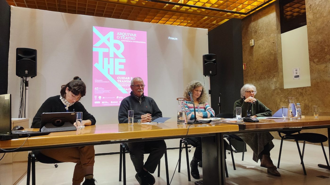 Esta conferência marcou o encerramento do Projecto ARTHE – Arquivar o Teatro (PTDC/ART-PER/1651/2021), que a Fundação para a Ciência e a Tecnologia financiou durante três anos. Pretendeu-se discutir, por um lado, a relação entre o cuidar de arquivos contendo objectos de diferentes materialidades e medialidades, com específicas exigências de meios, pessoas e conhecimentos técnicos (caso de guarda-roupa, registos audiovisuais, fotografias, adereços, materiais cenográficos, documentos manuscritos, dactiloescritos em suporte de papel variado) e os diversos modos da sua utilização e transmissão no âmbito da prática artística; e, por outro lado, o recente apelo ao estudo e à transmissão da informação contida nos arquivos de artes performativas enquanto memória de vivências de fruição do teatro que contribui para repensar a história como espaço epistemológico conturbado implicando múltiplos sujeitos, narrativas, geografias.